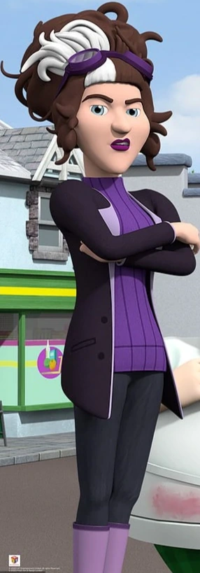 With the aid of her bumbling sidekick Doctor Crumpton, she intends to steal Joe Sparkes' new super battery to power her flying rescue suit in the hope of making it the greatest invention ever made and making her a trillionaire.
